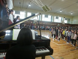 全校で「小さな勇気」を歌ったあと、各学年から6年生への感謝の気持ちをこめて