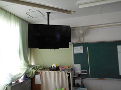 写真はGIGAスクールの工事で各教室に設置された大型モニター(50インチ)と無線ルーターになります。