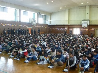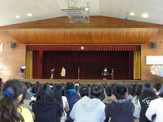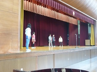 式が終わってから、生活委員会が春休みの暮らしについて劇を行いました。