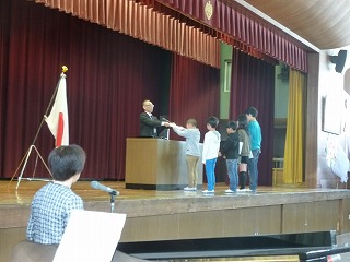 各学年の代表児童に修了証が手渡されました。