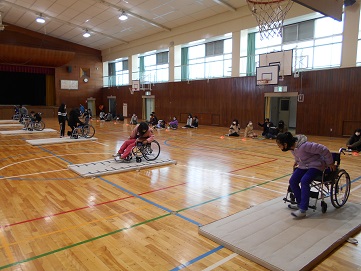事前に5年生の担任の先生方が、車いすなどを社会福祉協議会より借用し、当日は「車いす体験」「ガイドヘルプ体験」「高齢者疑似体験」が行われました。