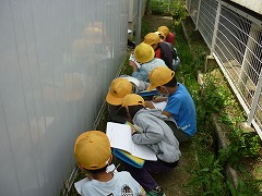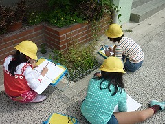日差しがどんどん強まり、初夏を思わせる暑さの中、3-1と3-3が校庭で春の生き物を探してスケッチをしていました。「テントウムシがいた!」「こっちに毛虫がいたよ。」「この花は何?」子どもたちは、見つけた動植物に思わず声が出てしまいます。さっそく理科ノートに記録します。始まったばかりの理科に、一生懸命取り組む3年生でした。