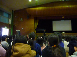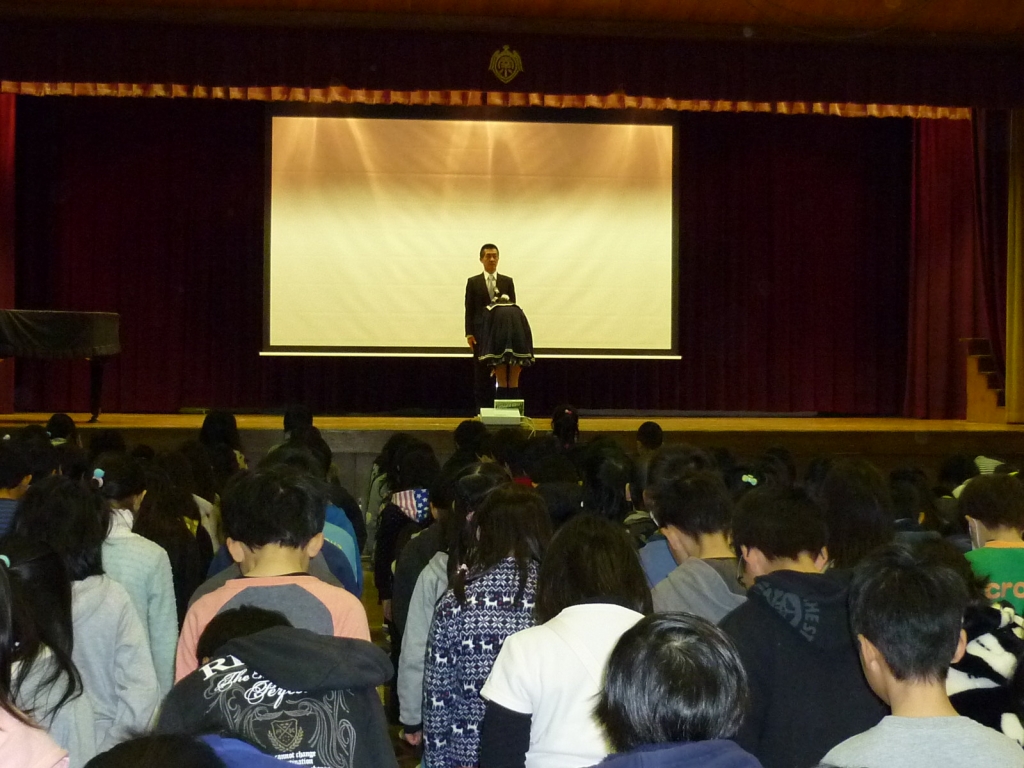体育館で「おはようございます!」 校長先生のプレゼンテーションを見ました。