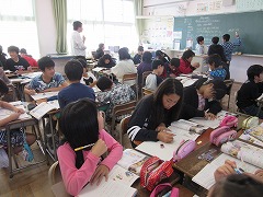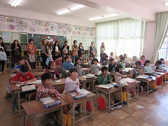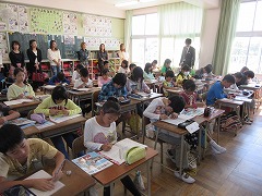 今日は授業参観です。2時間目が低学年、3時間目が高学年と、時間差をつけて兄弟がいてもたっぷり参観していただけるように2時間続きです。今日の廊下は、普段より少しだけゆったりしていました。