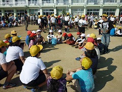 給食後の運動場に、久しぶりに集まった色別班です。今日は掃除をお休みし、南小スポーツカップに向けた練習が行われました。