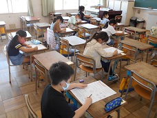 6年生は、漢字の学習を進めていました。漢字については休業中の課題として取り組んでいたため、20ページから進めることができていました。2年生は、音読に取り組んでいました(例年のように大きな声ではできませんが…)。