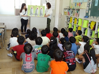 今年度2回目の読み聞かせを、図書委員会の方にしていただきました。1・2年生の子たちは、今回も集中してお話を聞いていました。また図書室には「お話の木」をつくっていただきました。とっても素敵なお話の木です。ありがとうございました。