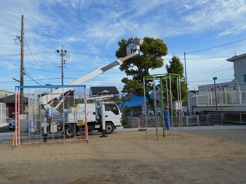 本日、授業後にカラスの巣の撤去を行っていただきました。