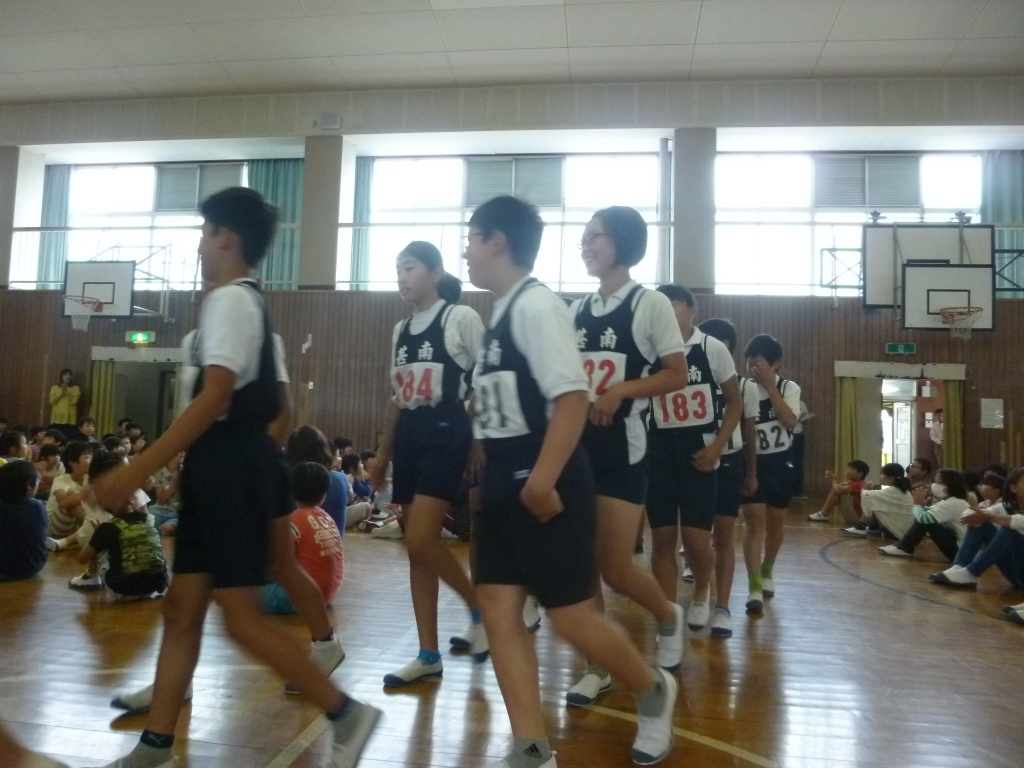 朝礼の前に、体育館で陸上部壮行会が行われました。