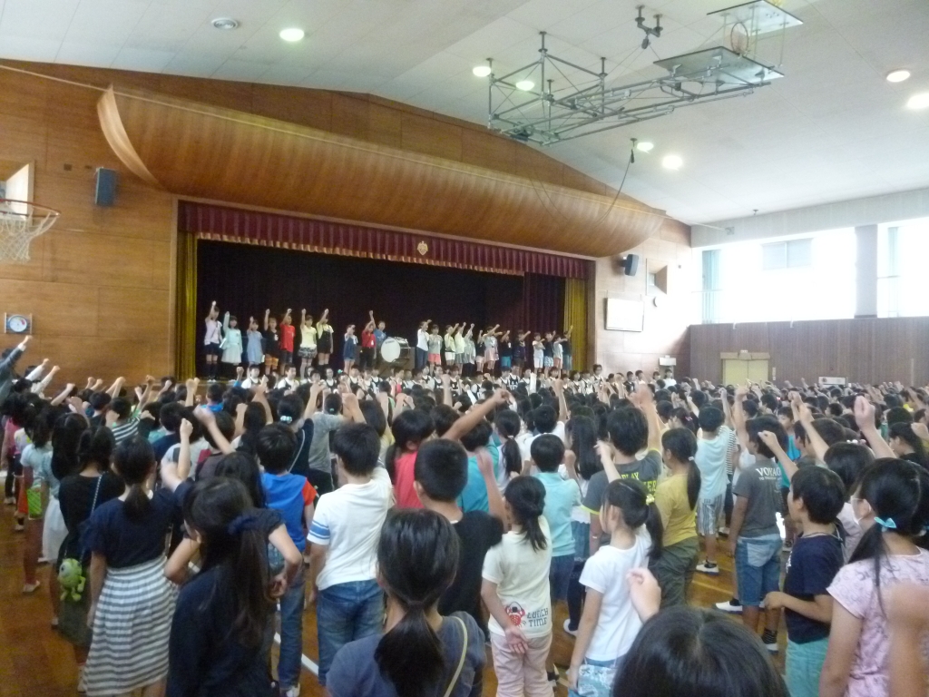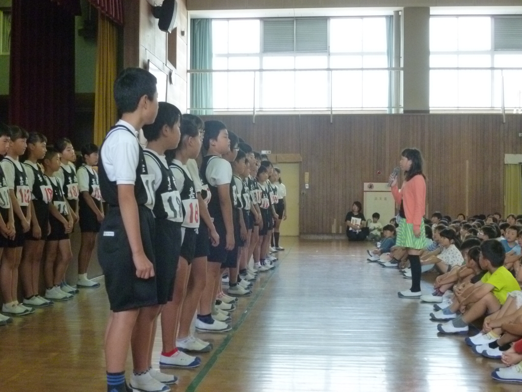 全校児童が一丸となって、大きな声で選手にエールを送りました。