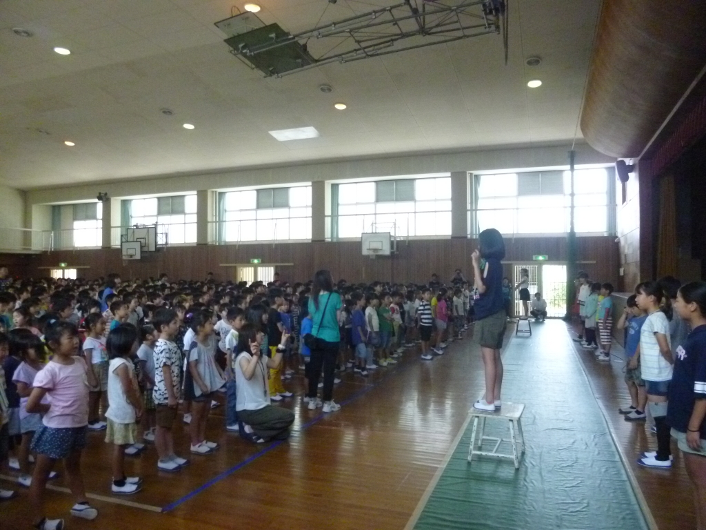 本日、朝礼の前に歌声集会が行われました。
