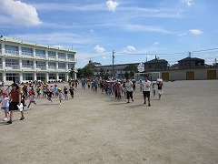 運動場ではすぐに整列、点呼をします。 4年生の雑巾ボランティアです。