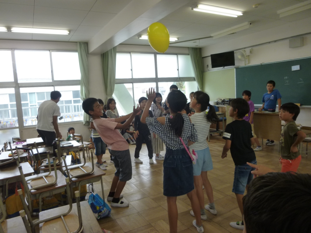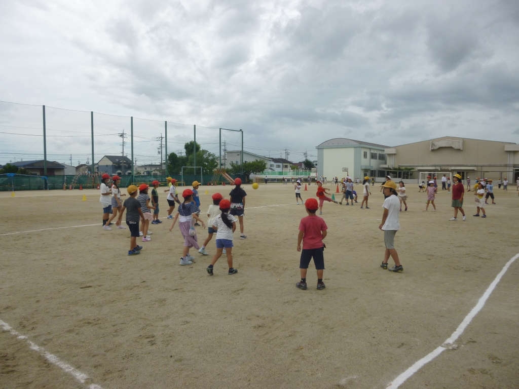 「風船バレーボール」「ハンカチおとし」「ドッジボール」など、前回のなかよしタイムで話し合ったゲームを、それぞれの班で準備し行いました。