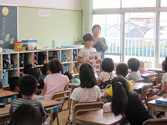 この時間は、教室の後ろに置かれた夏休みの自由研究を発表していました。ですので、全員が教室の後ろの角を向いていて、何だか変な感じです。さて、発表者は、実験したり調べたりした内容を発表しました。苦労したところ、やってみて分かったことも伝えました。画用紙やノートに、写真と一緒にまとめられ、とても分かりやすい研究ばかりでした。たくさんの子が理科に興味をもってくれると嬉しいと思います。