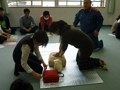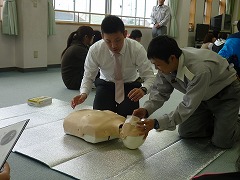 子どもたちの下校後に、先生対象のエピペン講習会を行いました。海部東部消防署の皆さんを講師にお迎えし、救急救命法とエピペンの打ち方を教えていただきました。