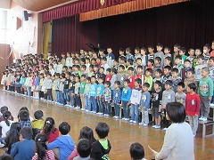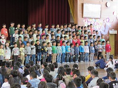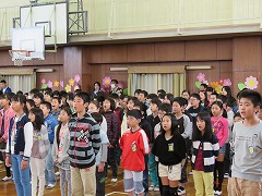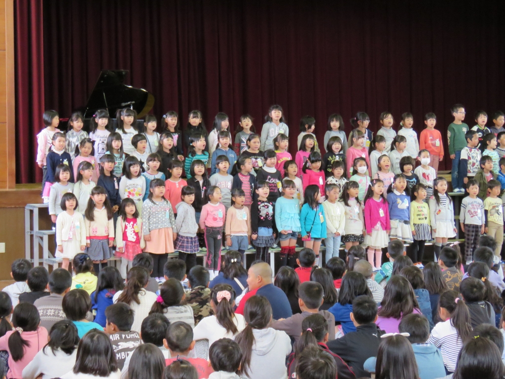 校歌斉唱です。早く一緒に歌おうね。