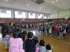 もう一度アーチをくぐって退場です。早く南小に慣れてね。