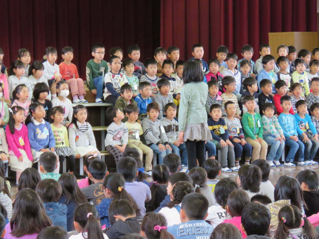 児童会長さんは、「困ったことがあったら、何でも聞いてください。」と話し、歓迎の気持ちを1年生に伝えました。次は、在校生による校歌です。特に、1年生の前にいた新2年生の口が大きく開き、元気に校歌を歌っていました。さっそく、お兄さん、お姉さんの姿を見せてくれましたね。1年生からは、合唱が披露されました。入学式の日から練習した『ドキドキドン!一年生』です。練習の成果が出るように、一生懸命歌いました。まだまだ学校に慣れていないのか、少し緊張した表情でした。