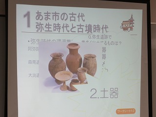 学芸員の方などに学校に来ていただき、あま市の歴史について学ぶことができました。