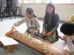 今日は、午前中に5年生が和楽器体験をしました。昨年もお世話になった3人の先生方に教えていただき、琴や尺八の生演奏を聞かせていただいたり、実際に琴を弾かせていただいたりしました。