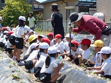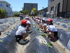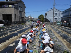 1・2年生が、畑でさつまいもの苗を植えました。
