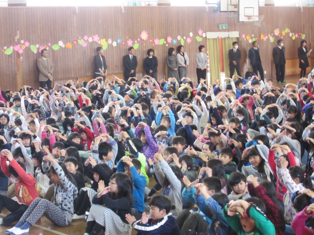 校長先生からは、この3学期にできるようになったことを振り返ったり、去年の4月に立てた約束を振り返ったりしました。『あいさつ』『靴の整とん』『廊下の歩行』の振り返りでは、各自で判定をしてもらいました。あいさつ「○」、靴の整とん「○」でしたが、廊下歩行は「×」の子がおおかったようです。校長先生の判定もおなじでした。この振り返りをもとに、4月からはさらに落ち着いた生活を送ってほしいと思います。