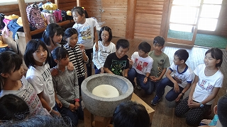お米をつぶし、棒に伸ばして、味噌をつけ、焼き立ての五平もちをいただきました。