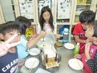 豆乳・にがりを使ってできたての豆腐をおいしくいただきました。
