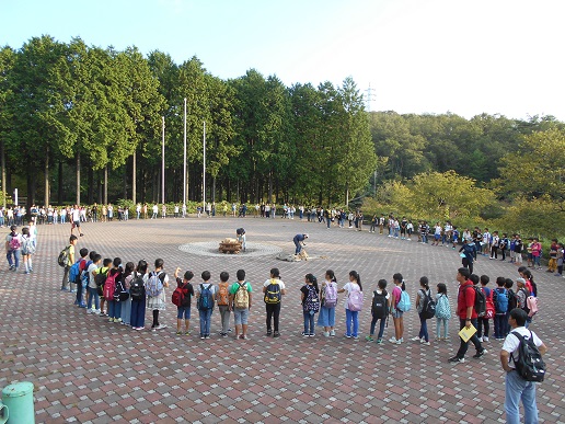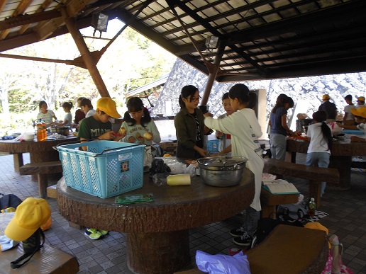 5年生の野外活動体験として、旭高原少年自然の家に1泊(9月18日から19日)しました。1日目は野外炊飯や自然散策、キャンプファイヤーを行い、2日目にはハイキングや体験活動(五平餅作り・豆腐作り・自然薯すり・餅つき)をしました。