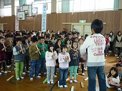 3年生。覚え立てのリコーダーを披露。 5年生。よさこいソーランを披露。 6年間を駆け足で振り返りました。