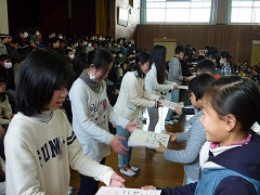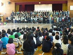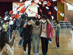 各学年から、6年生に感謝や激励の気持ちを込めた歌や演奏、劇などが行われました。楽しい出し物、引き締まった出し物など、各学年が工夫して6年生をお祝いしました。その後、思い出のスライド、6年生からのお礼の会、メッセージカード贈呈がありました。感動の中、6年生を送る会はあっという間に過ぎていきました。