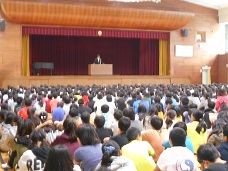 本日は前期の最終日で、臨時朝礼が行われました。