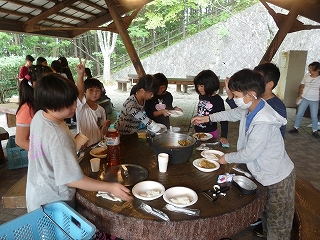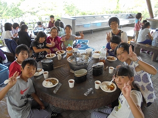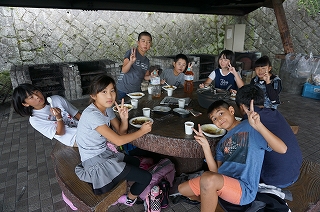 ちょっぴりご飯が焦げたグループや、ややスープカレー気味のグループもありましたが、おなか一杯満足した飯盒炊飯でした。