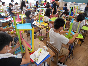 授業では、生活科や書写、図工などが行われていました。今週から6時間授業が始まり、普段の生活を取り戻しつつあります。