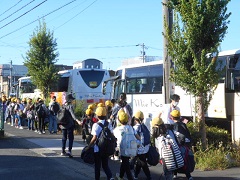 5年生が元気いっぱいに野外活動へ出かけていきました。