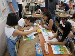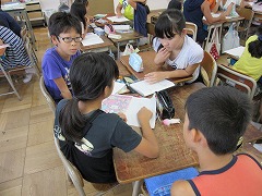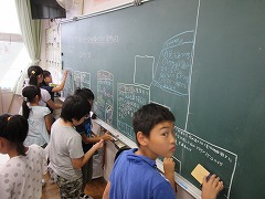 小グループで相談してまとめて・・・。 黒板に説明を書きます。