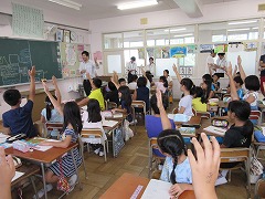 2時間目に、4-3で研究授業がありました。自分から進んで取り組み、友だちとも協力し、より深い学びを目指した授業の工夫を、校内の先生方で見合いました。子どもたちは多少の緊張があったかもしれませんが、普段の姿と同じ、活発な学習をしていました。
