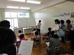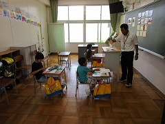 今日は、あま市内の先生方の勉強会で、20人を超えるお客様が南小にいらっしゃいました。5時間目に、みどり組の全4クラスで授業の様子を見学し、学習方法について意見を交換するのです。掃除の後で、まだ落ち着かない中、始業に合わせお客様がやってきました。そして、多いクラスは一度に10人近くの方が見学されていました。おうちの人に見られるよりも緊張していましたが、頑張って勉強している姿を見ていただけたと思います。