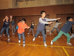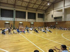 5年生はまだまだ踊れる、よさこいソーランです。準備運動はばっちり!?