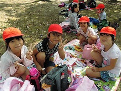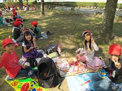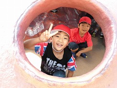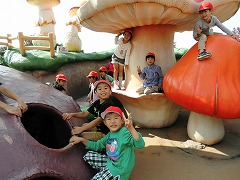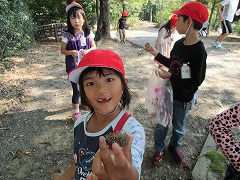 1つ目はクラフト体験をしました。スポンジを使った万華鏡作りや缶バッジ作りなど、一人1つずつ作品を作りました。お弁当の後は、遊具で遊びました。おもちゃの家や巨大キノコ、すべり台など、学校にはない楽しい遊具が一杯で、みんな笑顔でいっぱいになりました。最後は秋見つけをしました。どんぐりや落ち葉など、敷地内に落ちていた、秋を感じることができる自然を探し、持ち帰りました。1年生にとって、充実した1日でした。