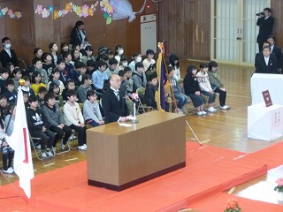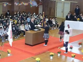 門出の言葉では6年間の思い出を呼びかけと歌で綴り、これからの中学校生活や自分の将来に向けた希望や思いを伝えました。
