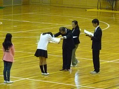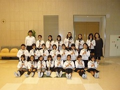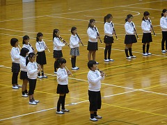音楽部の順番は、何と1番でした。開会式が終わると、すぐに出番です。紹介が終わると、広いアリーナに21人の子どもたちが歩いて行きます。曲目は「ちいさなせかい」と「ハイホー」です。サッカー部やバスケットボール部と同じように、下校後に残り、夕方遅くまで練習を重ねてきました。その成果をしっかりと出すことができ、アリーナには美しいリコーダーの音色が響きわたり、会場からは、大きな拍手をいただくことができました。演奏後に、廊下から「一番いい演奏だったね!」と顧問の先生の言葉も聞こえてくるほどの演奏でした。部員のみんなの笑顔が目に浮かぶようでした。