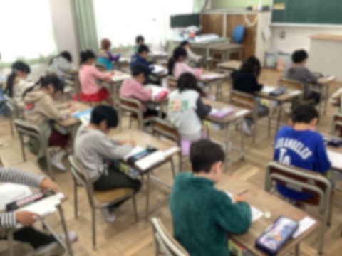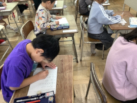 1年生は国語の時間に漢字テストを行いました。1年生になって習った漢字を丁寧に書いていました。