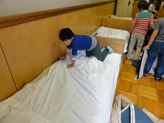 5年野外活動1日目(入所式・ベッドメイキング・夕食)