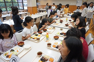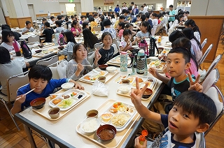 入所式の後、ベッドメイキング、自然観察と続き、夕食(バイキング)をいただきました。