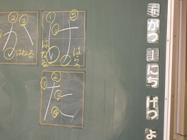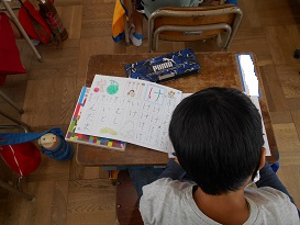 1年生ではひがらなの学習に取り組んでいます。書き順はもちろん、とめ、はらい、はねを、ていねいに指導しています。子ども達は熱心にワークシートにひらがなの練習をしています。よくできた点、次に気をつけるとよい点などを先生にほめてもらったり、教えてもらったりして、子ども達はがんばって取り組んでいます。