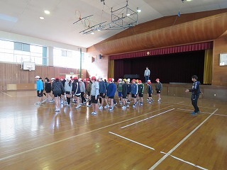 集団行動ということで、「まわれ 右」「右向け 右」など号令に合わせて行動しました。