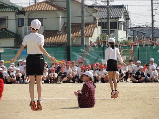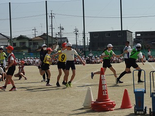 リレー、ドッジボール、なわとび、綱引きの競技の対抗戦でした。