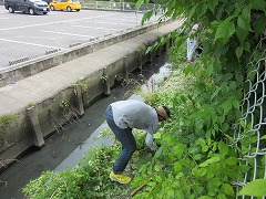10名余りのメンバーが集まり、草刈り機、剪定ばさみ、鎌などの道具を持って、敷地北側の水路沿いを除草しました。「何じゃこりゃ。」「うわ~。」と驚くほどの草(木?)の量です。しかし、驚きの声もそこそこに、お父さん方は水路に足を進め、行く手をさえぎる草木を切り開いていきます。グィーン!カチャン、カチャン!機械や器具の音だけが響き、黙々と作業は進んでいきます。南小のためにと、ひたむきに取り組める大人の姿。とても格好いいです。こういう後ろ姿を、子どもたちに見て、感じてほしいです。