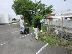 日曜日です。子どもたちはお休み。しかし、休みだからこそできる活動があります。今日は、『おやじの会』のみなさんと一緒に、除草活動を行いました。